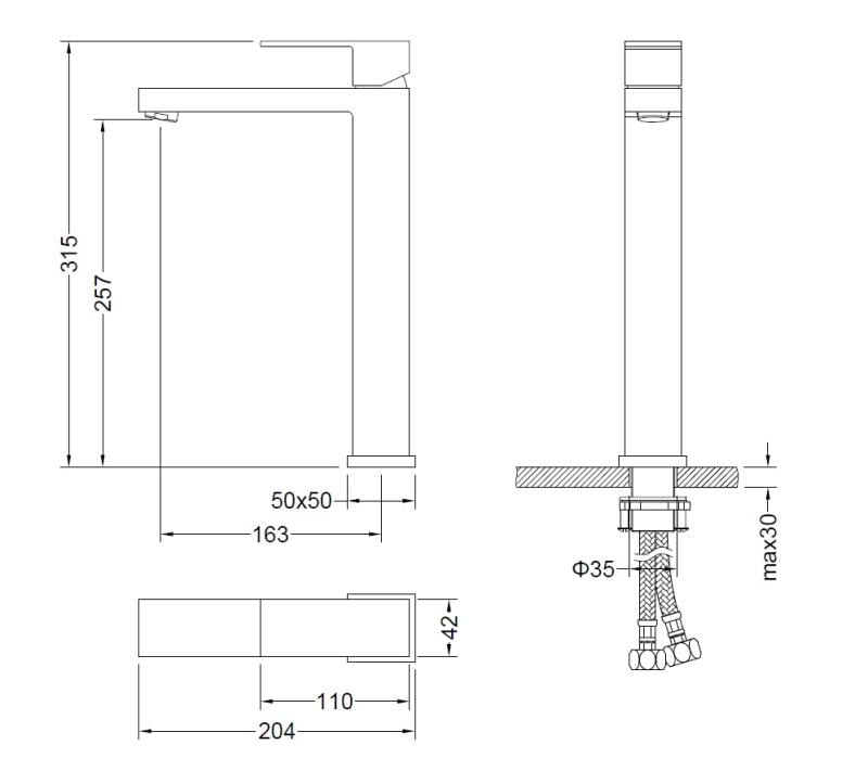 Înălțimea totală de 315 mm, înălțimea gurii de scurgere de 257 mm și adâncimea de 204 mm asigură un confort sporit în utilizare, fiind ideală pentru lavoarele înalte.