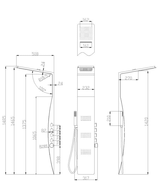 Panoul de duș ASPEN, fabricat din aluminiu, combină funcționalitatea avansată cu un design modern și elegant. Cu dimensiunile de 146,5×23,2×51,8 cm, acest panou este finisat în alb mat cu margini negre, oferind un aspect sofisticat oricărei băi. Este echipat cu funcții multiple, inclusiv duș tip ploaie tropicală, sauna și duș cu efect de cascadă, precum și un duș de mână pentru flexibilitate maximă. Pe lângă acestea, dispune de un hidromasaj lateral care oferă masaj cu jeturi de apă. Un plus important îl reprezintă valva termostatică de amestec integrat, ce permite reglarea precisă a temperaturii apei pentru confort și siguranță sporită.